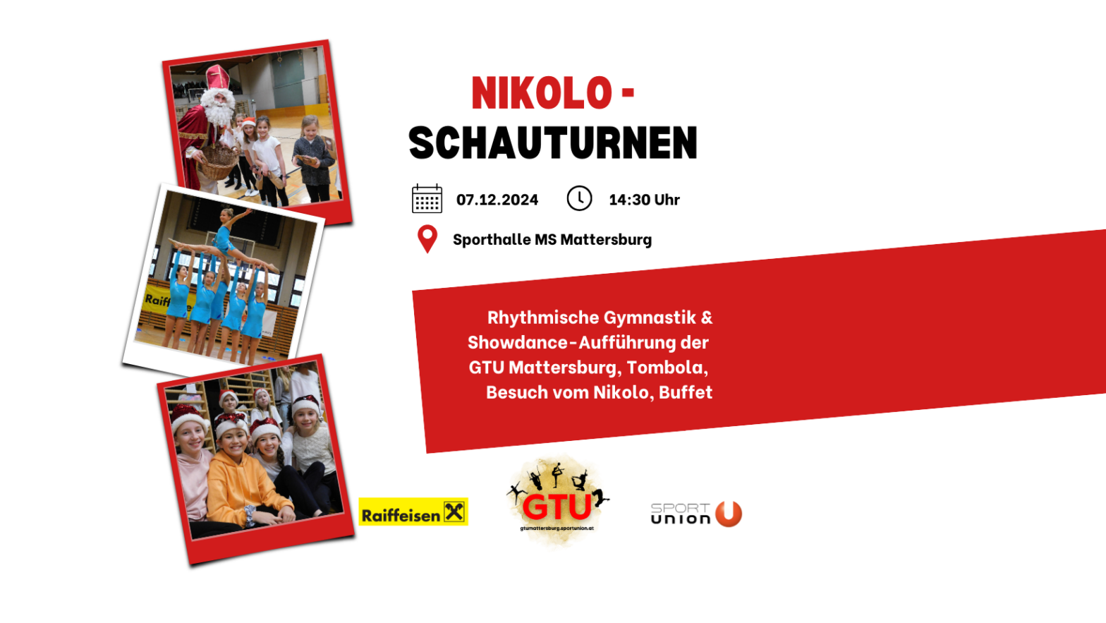 Die Gymnastik & Tanz-UNION Mattersburg lädt herzlich zum diesjährigen Nikolo-Schauturnen ein!